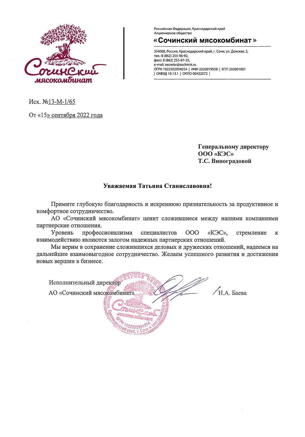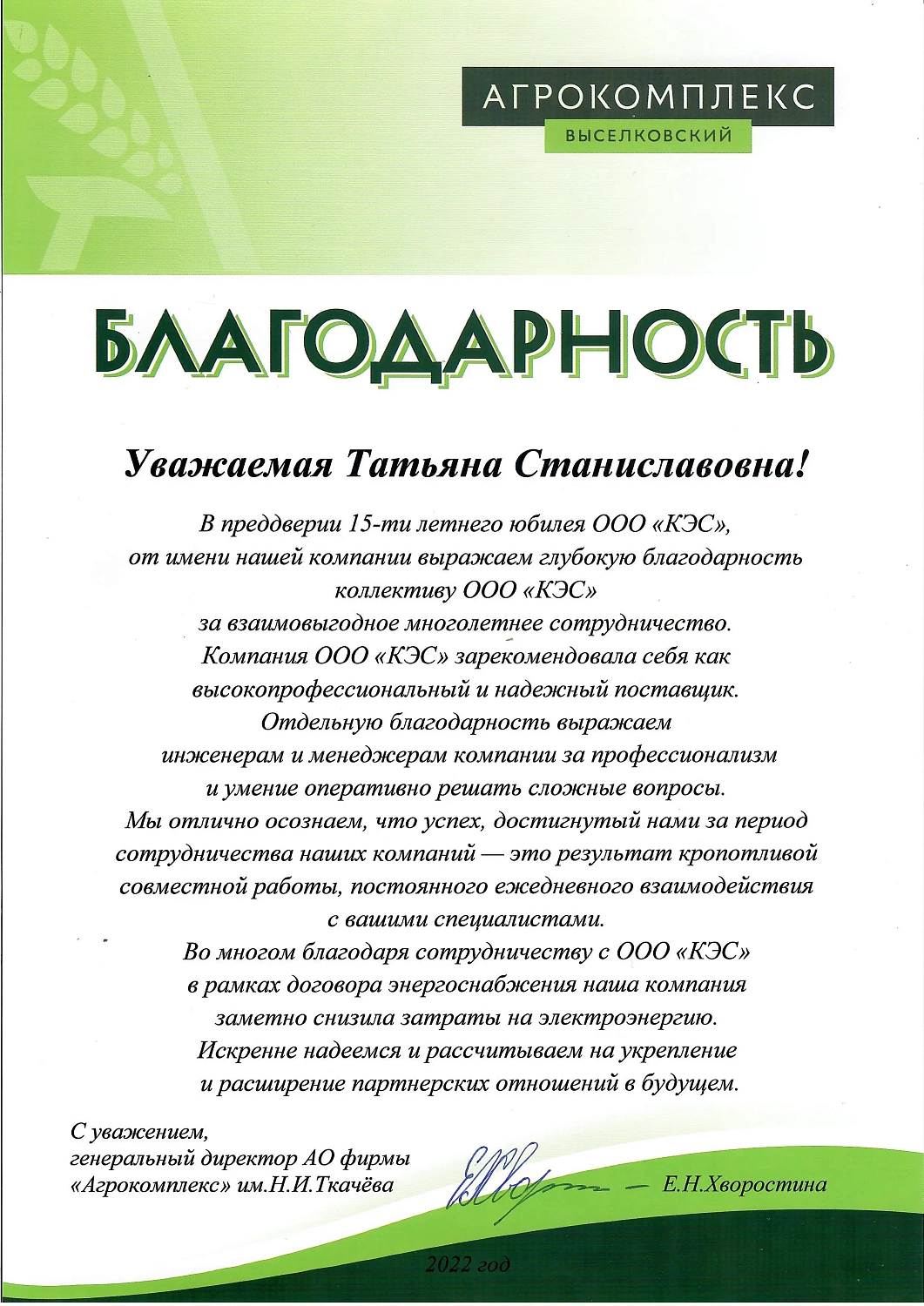 Вам сердечную признательность за успешное сотрудничество и оказанное нам доверие.