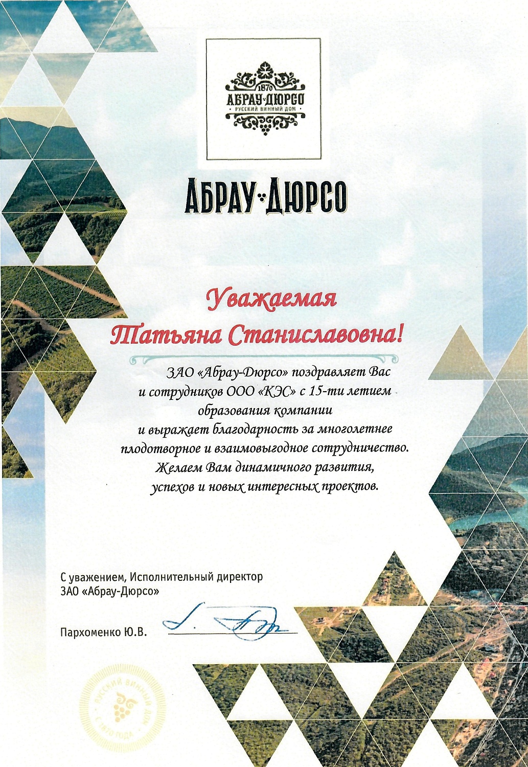 Желаем Вам и Вашему коллективу успешной созидательной деятельности, новых