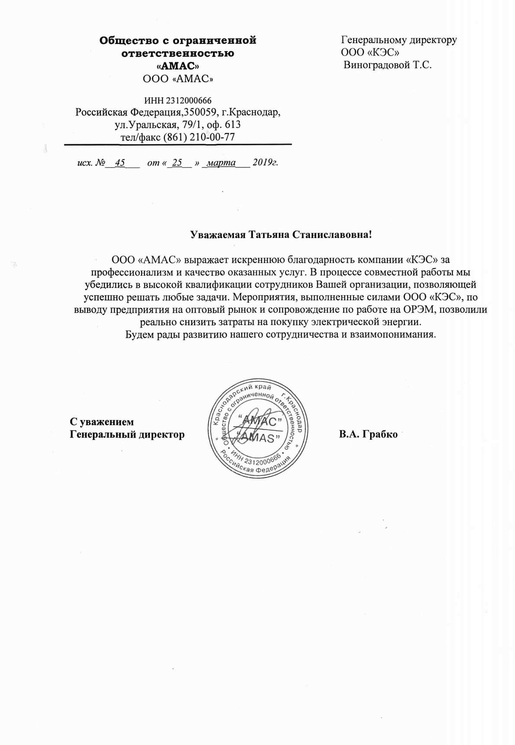 От имени всего коллектива АО «Международный аэропорт «Краснодар» выражаем.