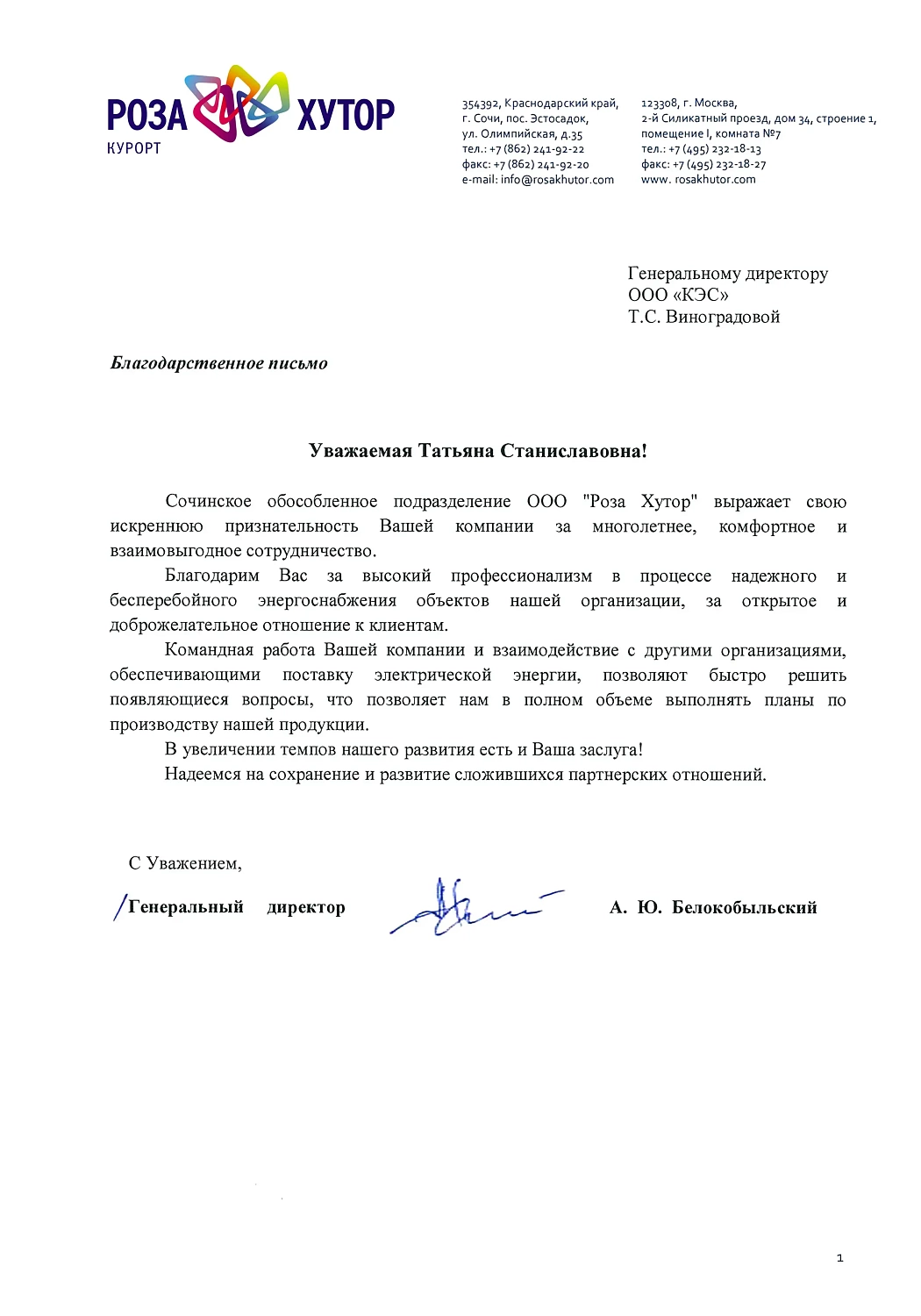 Мы высоко ценим Ваши усилия и энергию, направленные на развитие совместных